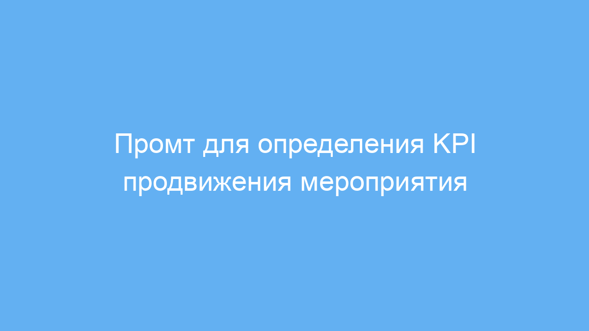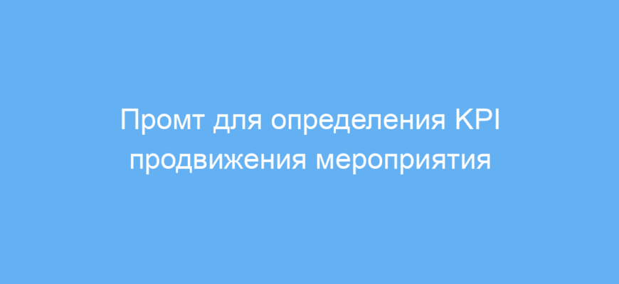 Этот промт предназначен для аналитиков данных, маркетологов и организаторов мероприятий. Он помогает быстро определить ключевые показатели эффективности (KPI) для оценки результатов продвижения конкретного события.