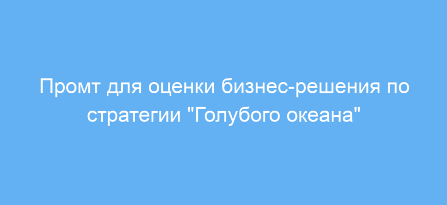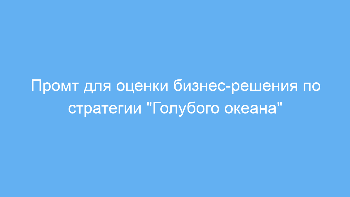 Принцип работы прост: вы подставляете описание вашего бизнес-решения, а нейросеть анализирует его с позиции стратегии «Голубого океана», предлагая, как можно уйти от конкуренции и создать новое ценностное предложение.