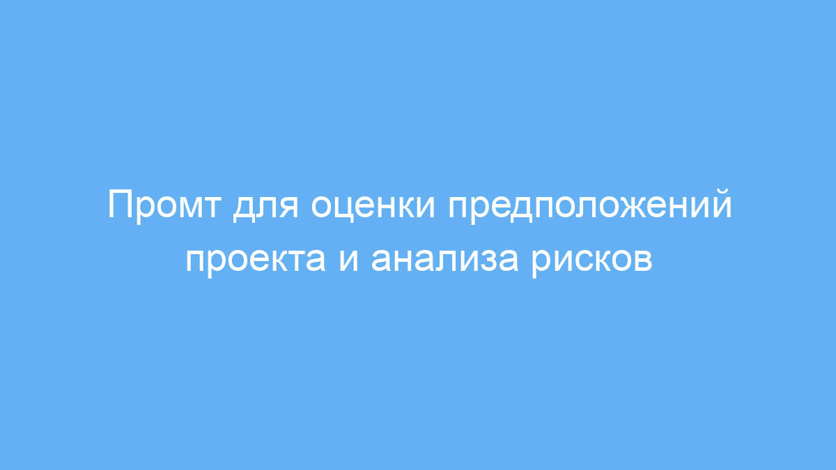 Этот промт предназначен для менеджеров проектов, аналитиков, стартаперов и всех, кто занимается планированием и оценкой идей в рамках конкретного проекта. Он помогает структурировать анализ ключевых предположений, выявлять потенциальные риски и возможности, а также рассматривать альтернативные сценарии развития. Благодаря этому можно более осознанно принимать решения, минимизировать ошибки и оптимизировать стратегию.