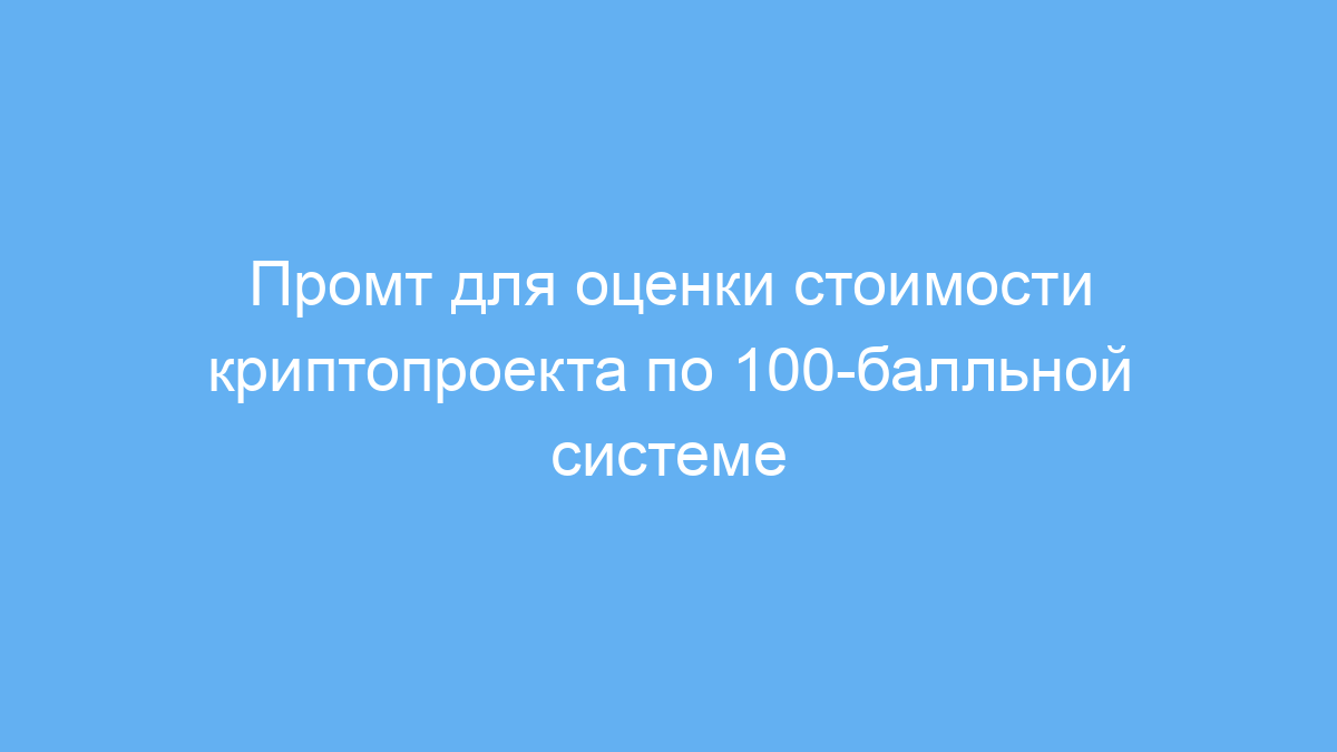 Этот промт предназначен для специалистов, инвесторов, аналитиков и всех, кто интересуется криптовалютами и хочет объективно оценить стоимость криптопроекта. Использование такого промта помогает систематизировать анализ, разбив его на конкретные критерии с максимальными баллами, что помогает принять более взвешенные решения при инвестировании или исследовании рынка.