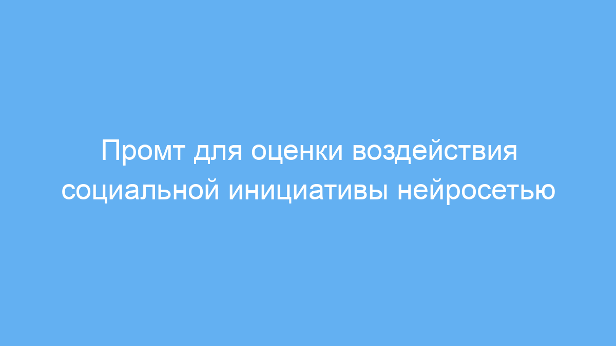 Промт структурирует оценку, разбивая сложное понятие «воздействие» на ключевые параметры. Нейросеть, следуя заданным критериям, выдает полный анализ и оценку инициативы, что ускоряет подготовку отчетов и принятие решений.