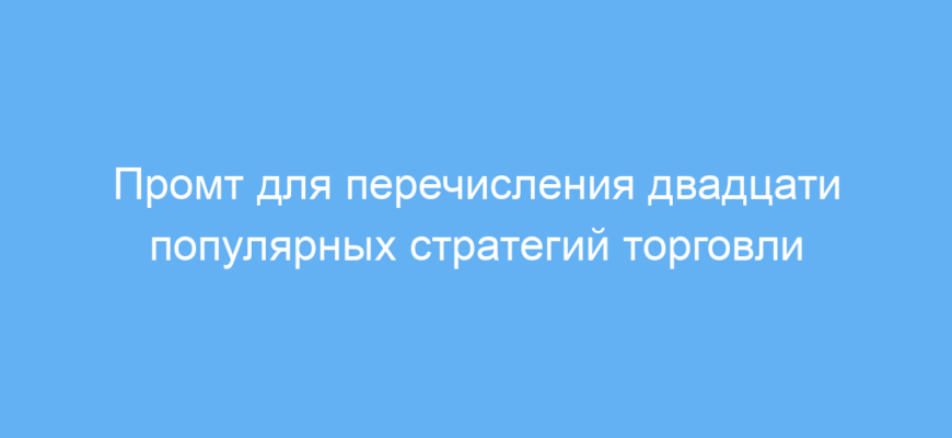 Промт работает через нейронную сеть, которая на основе запроса генерирует структурированный перечень стратегий. Вместо долгих поисков и анализа, пользователь получает готовую информацию одним запросом, что упрощает подготовку к торговле или обучению.