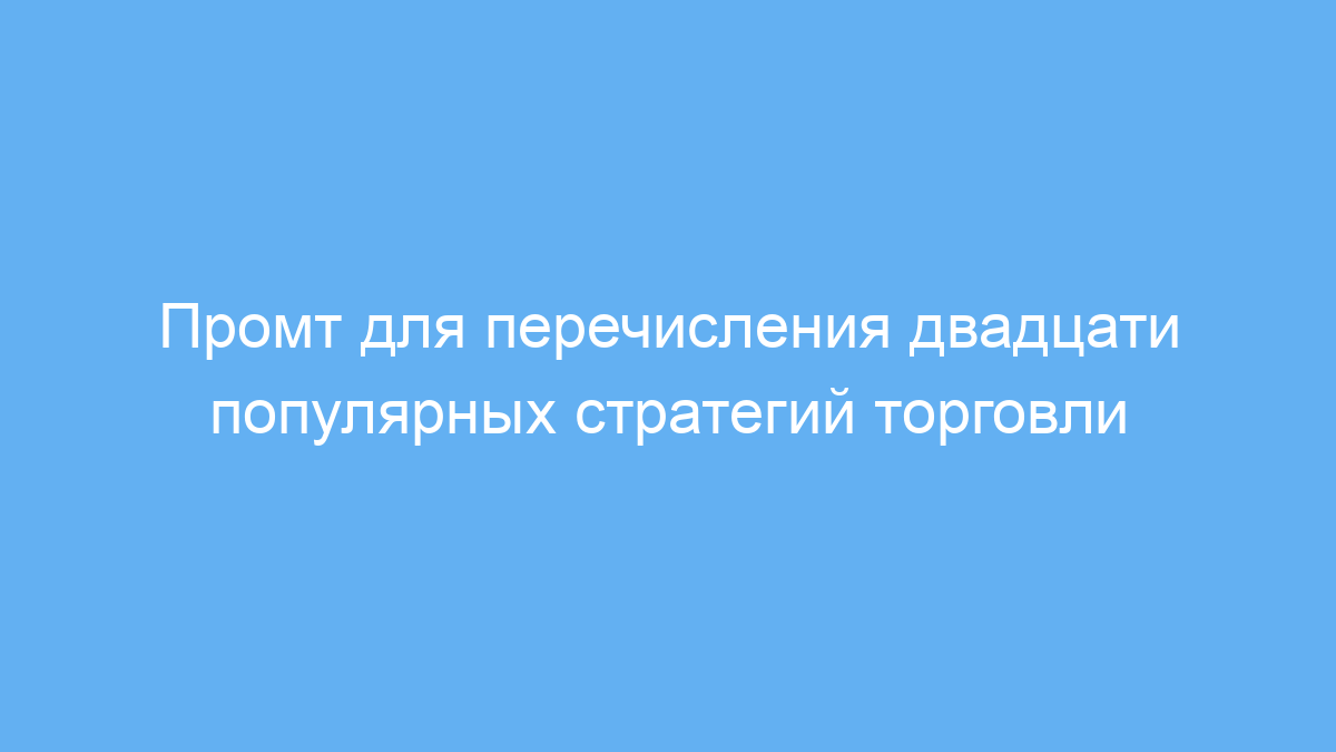 - Промт подойдёт для быстрого ознакомления, но для глубокого изучения стратегий рекомендуется дополнительно изучать литературу и практику.