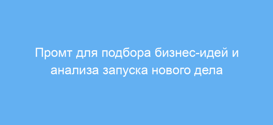 Промт решает задачи генерации бизнес-идей, оценки их ресурсной и временной загрузки, а также анализа рисков и возможностей. Благодаря этому можно принимать обоснованные решения о запуске нового дела, оптимизировать стратегию и избегать излишних затрат.