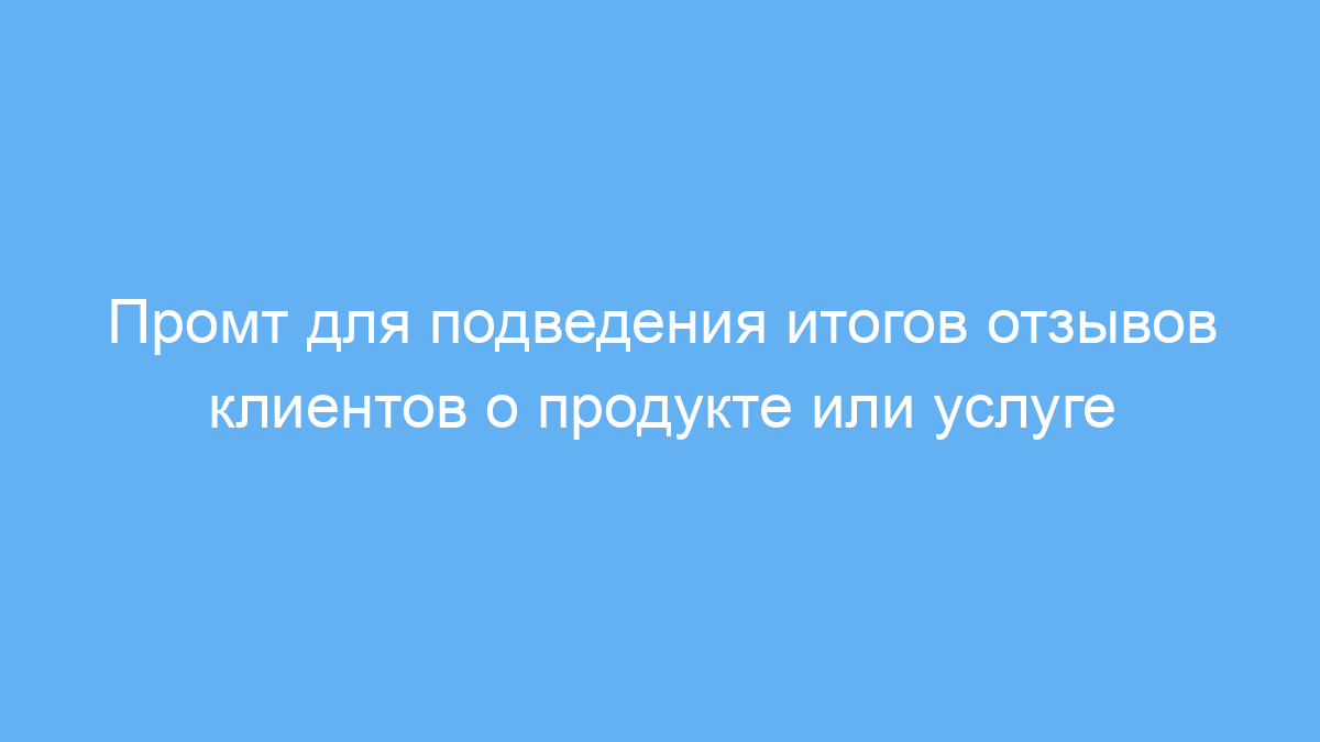 Этот промт создан для тех, кто хочет быстро и эффективно обобщить отзывы клиентов о конкретном продукте или услуге. Он помогает маркетологам, менеджерам по качеству, руководителям и аналитикам клиентской поддержки быстро выявить сильные и слабые стороны предложения, опираясь на реальные данные. Основная проблема, которую решает промт — необходимость вручную сортировать и анализировать большое количество отзывов, что занимает много времени и может привести к пропущенным важным деталям.