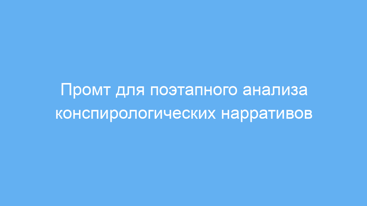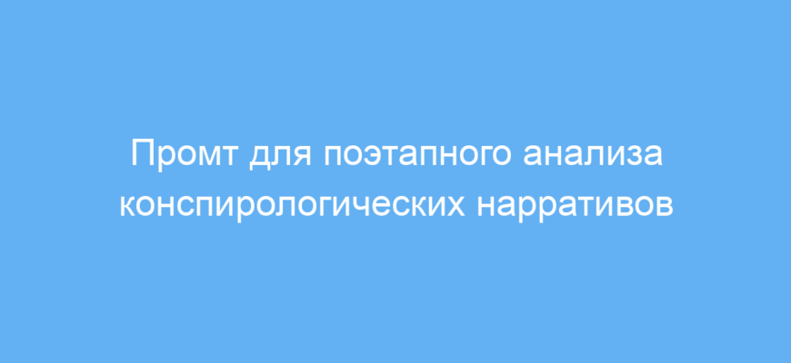 При работе с промтом важно выбрать конкретный конспирологический нарратив — например, популярную теорию заговора или ложный миф, актуальный для вашей аудитории.