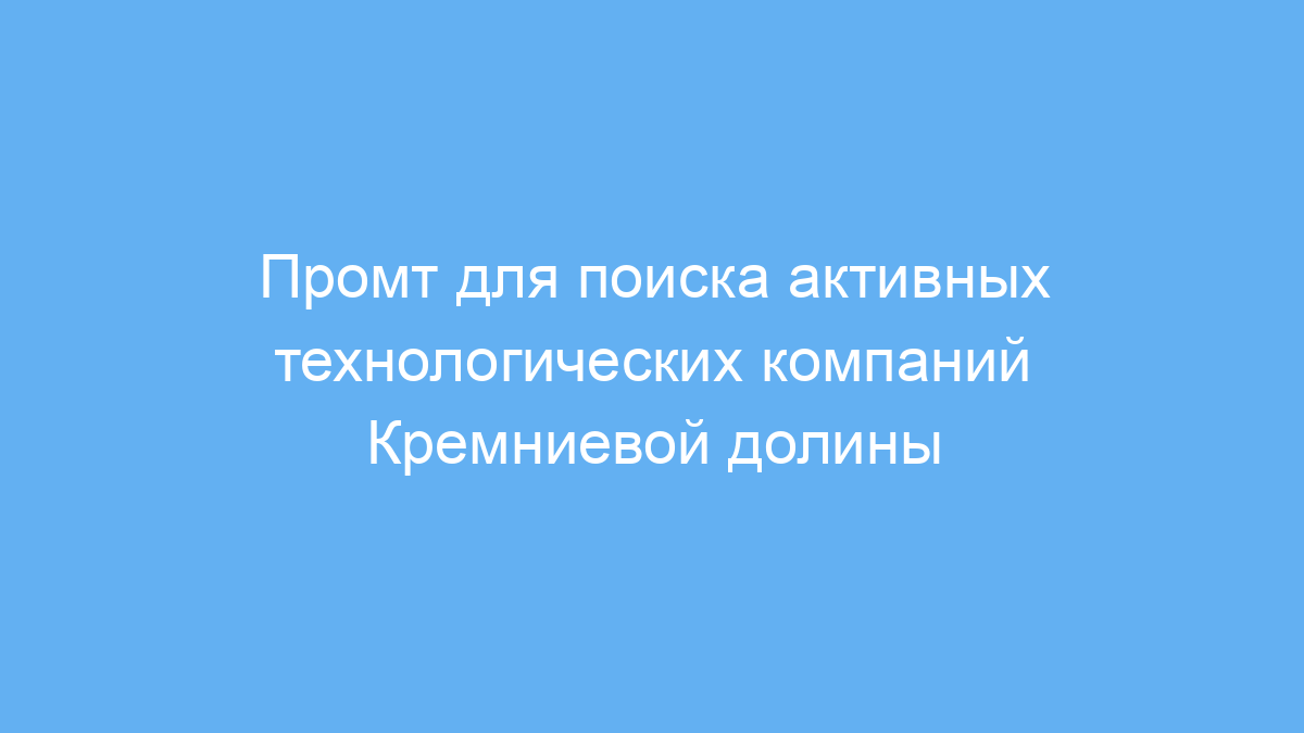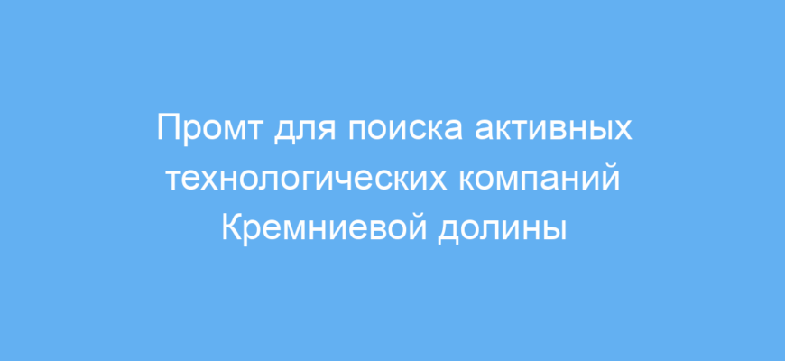 Использование этого промта значительно упрощает задачу поиска и систематизации информации о технологических компаниях Кремниевой долины. Он помогает быстро выделить именно активные и релевантные организации, что экономит ваше время и силы при анализе рынка или подготовке исследовательских материалов.