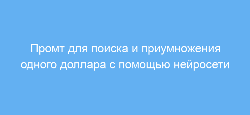 Чтобы работать, промт просит нейросеть представить себя помощником, который полностью сосредоточен на теме «одного доллара», анализирует базы данных и сайты о заработке и инвестировании, собирая и структурируя знания с конкретными примерами. Такая специализация помогает получить сфокусированный, практичный и обоснованный ответ.