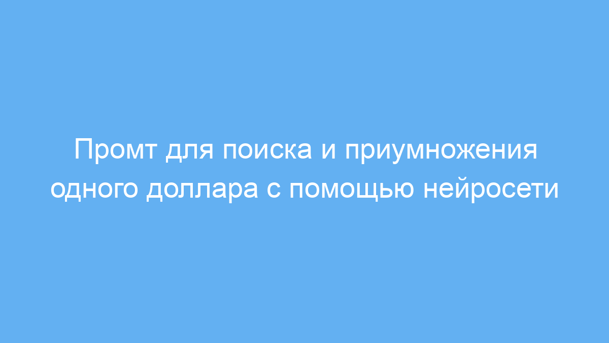 Этот промт предназначен для пользователей нейросетей, которым нужна помощь в поиске и максимальном использовании идеи «одного доллара». Он помогает собрать актуальную информацию о способах заработать или вложить всего один доллар, структурировать эти методы и дать реальные примеры действий.