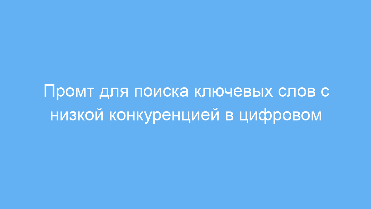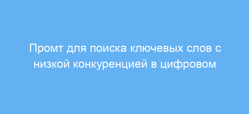 Этот промт предназначен для специалистов по SEO, маркетологов и владельцев сайтов в сфере цифрового маркетинга. Его задача — помочь быстро подобрать список ключевых слов с высоким объемом поиска, но при этом с низкой конкуренцией. Такие ключевые слова важны для эффективного продвижения сайта, так как они приносят трафик без больших затрат на рекламные кампании.