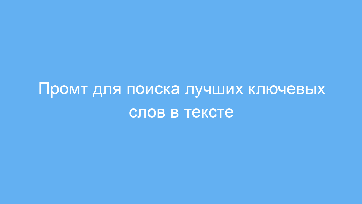 Основная задача промта — проанализировать текст и выделить ключевые слова, которые максимально точно отражают его тематику. Это помогает сэкономить время на самостоятельном подборе слов, которые часто бывают неочевидными или сложными для поиска без специальных инструментов.