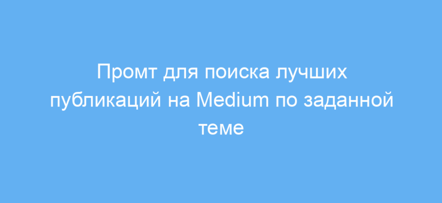 Использование данного промта позволяет быстро получить структурированный список качественных публикаций на Medium по нужной тематике. Это экономит время и силы на самостоятельный поиск, помогает собрать релевантные материалы для учёбы, работы или исследования.