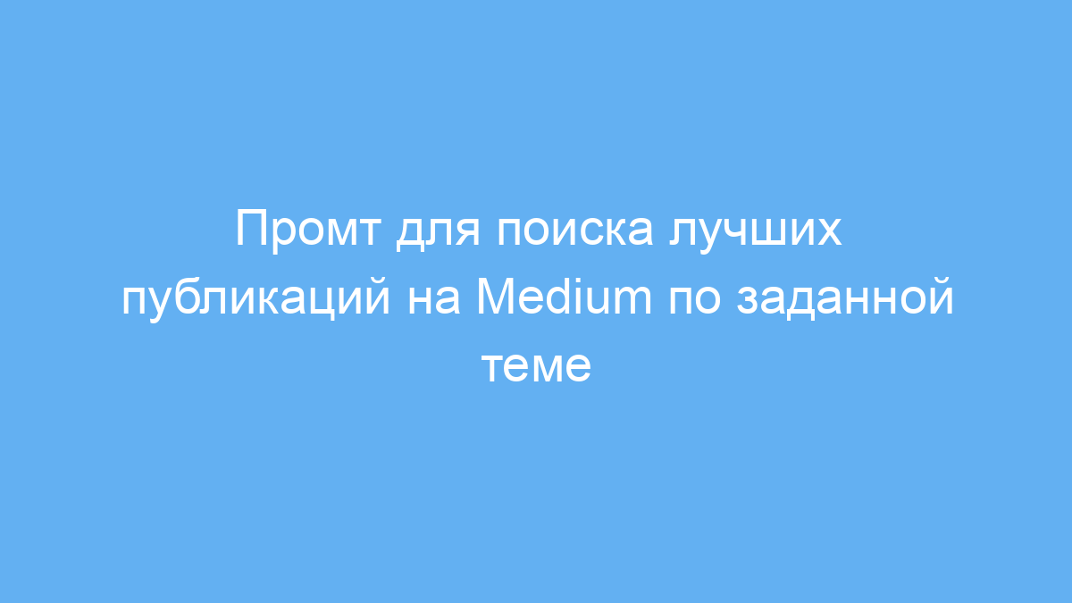 Промт работает так: пользователь вводит тему или нишу, которую нужно проанализировать. Нейросеть генерирует список публикаций на Medium, где для каждой статьи приводится краткое описание и аргументация, почему она подходит под указанную тематику. Такой инструмент полезен для исследования рынка, создания контент-планов, обучения или вдохновения.