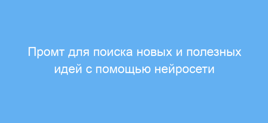 Работает промт следующим образом: сначала нейросеть анализирует современные потребности в различных жизненных областях и выделяет конкретные проблемы, которые ещё не решены или решены недостаточно эффективно. Затем она предлагает современные технологии, которые можно использовать для создания новых решений, раскрывая детали и преимущества. Нейросеть предлагает пользователю самому выбрать сферу для анализа либо предлагает рассмотреть широкий спектр областей.