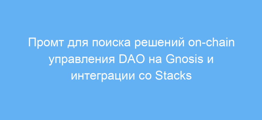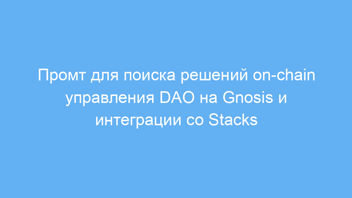Этот промт предназначен для разработчиков, исследователей и энтузиастов блокчейн-технологий, которые ищут информацию о готовых «on-chain» решениях управления децентрализованными автономными организациями (DAO) на базе блокчейна Gnosis с возможностью интеграции с блокчейном Stacks.