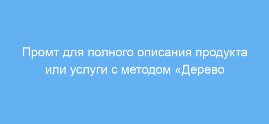 Промт решает проблему разбора и систематизации информации, облегчая подготовку материалов для презентаций, продающих страниц, исследований рынка и обучения. Благодаря применению метода «Дерево мыслей» он последовательно раскрывает каждый пункт, позволяя видеть целостную картину.