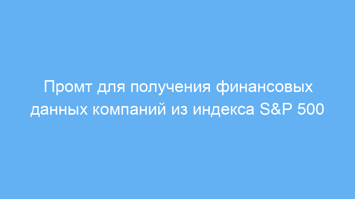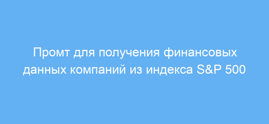 Использование данного промта существенно упрощает сбор и анализ финансовой информации по компаниям из S&P 500. Он позволяет быстро получить достоверные данные и понять положение компании на рынке без долгого поиска и изучения отчетов.