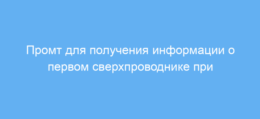 Принцип работы основан на прямом и конкретном вопросе, который нейросеть воспринимает как задачу предоставить подробный ответ о конкретном научном достижении с упоминанием условий экспериментальной работы сверхпроводника.