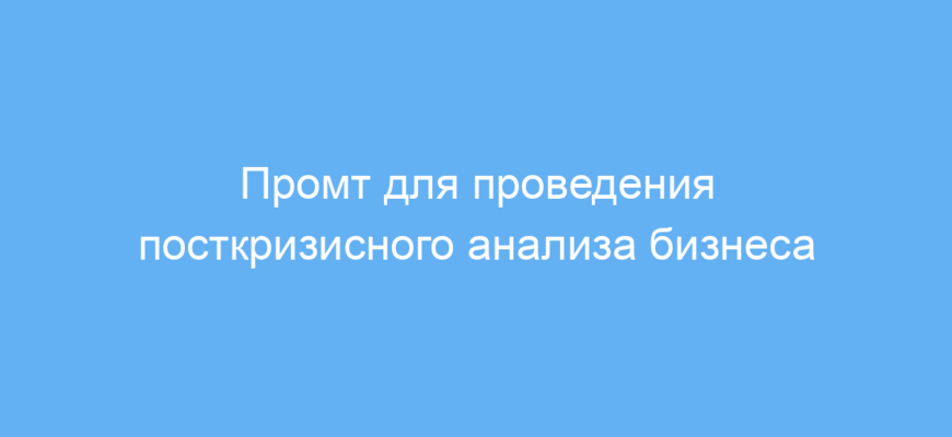 Этот промт предназначен для специалистов по управлению кризисами, владельцев бизнеса, маркетологов и PR-менеджеров, которые хотят глубже понять, как их компания справилась с кризисной ситуацией. Главная задача промта — помочь проанализировать пройденный кризис, оценить эффективность принятых мер и подготовить рекомендации для будущих действий.