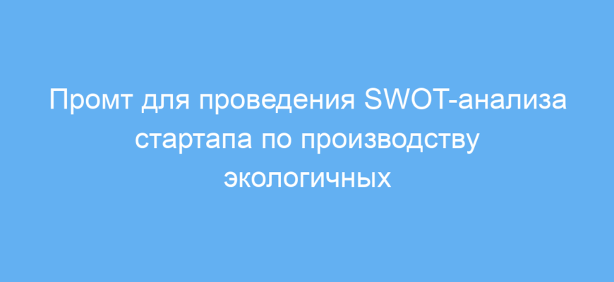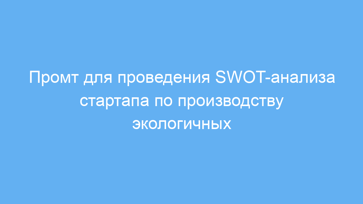 Этот промт помогает быстро получить структурированный SWOT-анализ для вашего стартапа или бизнеса. Он экономит время и упрощает понимание ключевых факторов успеха и рисков. Используя его, вы сможете более эффективно планировать развитие и принимать обоснованные решения.