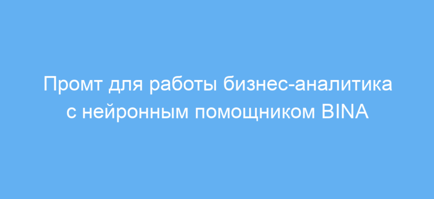 Этот промт создан для специалистов в области бизнес-аналитики, менеджеров проектов, IT-аналитиков и всех, кто работает с большими объёмами данных. Он помогает получить умного виртуального помощника — BINA, который не просто анализирует данные, но и умеет понимать задачи и взаимодействовать на естественном языке.