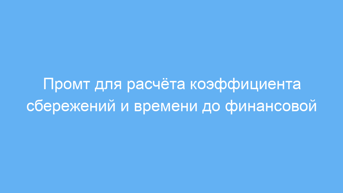Этот промт предназначен для тех, кто хочет понять, сколько средств удаётся откладывать из дохода, и за какой срок можно достичь финансовой независимости. Он помогает пользователям, планирующим личный бюджет и инвестиции, получить представление о своей финансовой стабильности и перспективах.
