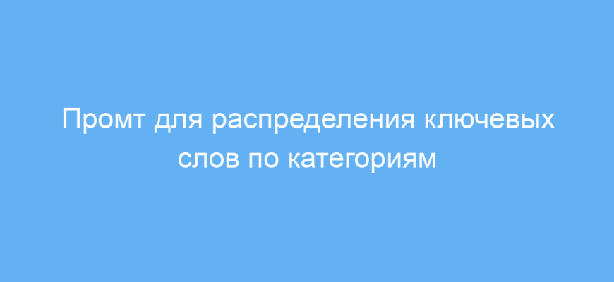 Использование такого промта упрощает работу с большими списками ключевых слов, экономит время на их ручном анализе и уменьшает вероятность ошибок при группировке. Промт анализирует набор ключевых слов и автоматически распределяет их по логически связанным категориям, что облегчает дальнейшую работу с ними.