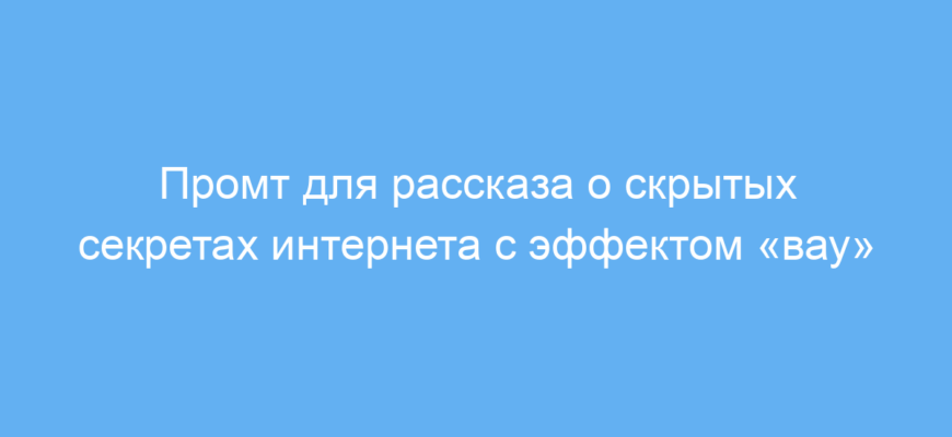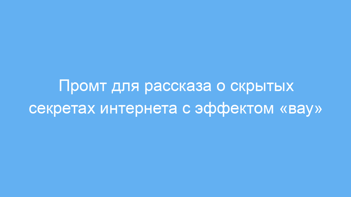 Этот промт экономит время на поиске и отборе необычного контента о тайнах интернета, помогая создавать захватывающие тексты с эффектом «вау», которые легко воспринимаются и вызывают интерес у читателей.