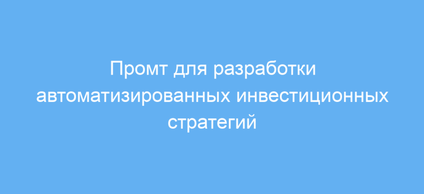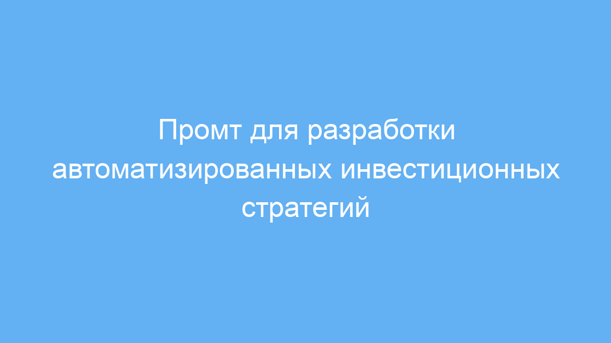 Использование данного промта помогает быстро и удобно формировать автоматизированные инвестиционные стратегии, позволяя экономить время на поиски информации и снижая необходимость постоянного контроля. Он обеспечивает пошаговое сопровождение от выбора стратегии до её корректировки с учётом рыночных изменений, что особенно важно для начинающих и занятых инвесторов.