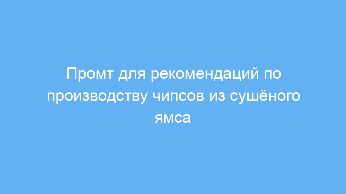 Использование данного промта позволяет быстро получить комплексные, структурированные рекомендации по налаживанию или оптимизации производства уникального продукта — чипсов из сушёного ямса «слоновья лапа». Это экономит время на изучение технологий и помогает избежать типичных ошибок в планировании.