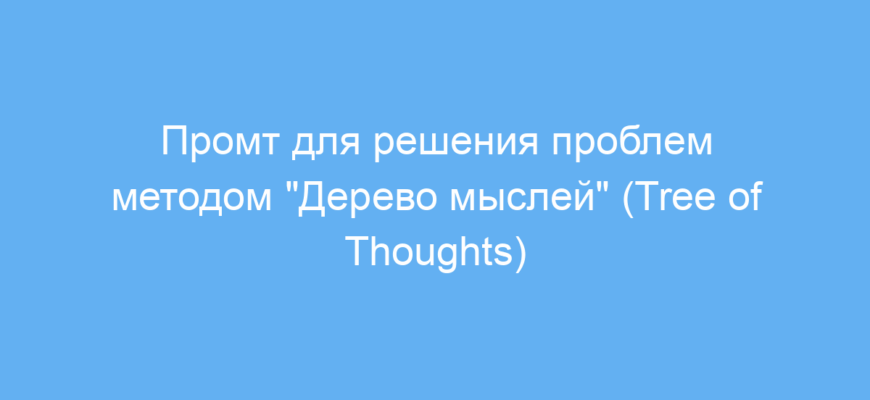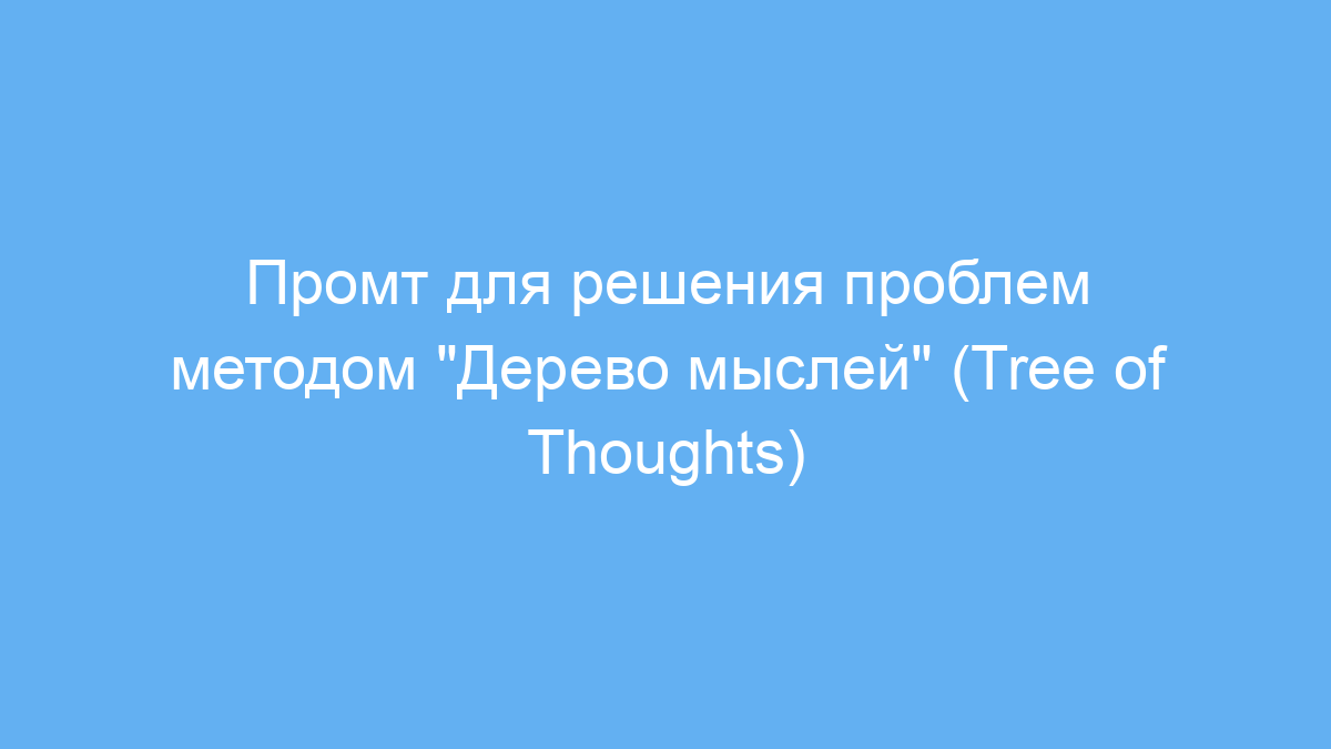 Промт помогает разбить сложную задачу на несколько аспектов, построить разветвления для каждого важного пункта и постепенно сузить выбор, отсекая менее перспективные направления. Такой метод помогает избегать хаотичных мыслей и сконцентрироваться на действительно полезных альтернативных решениях.