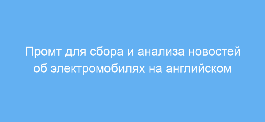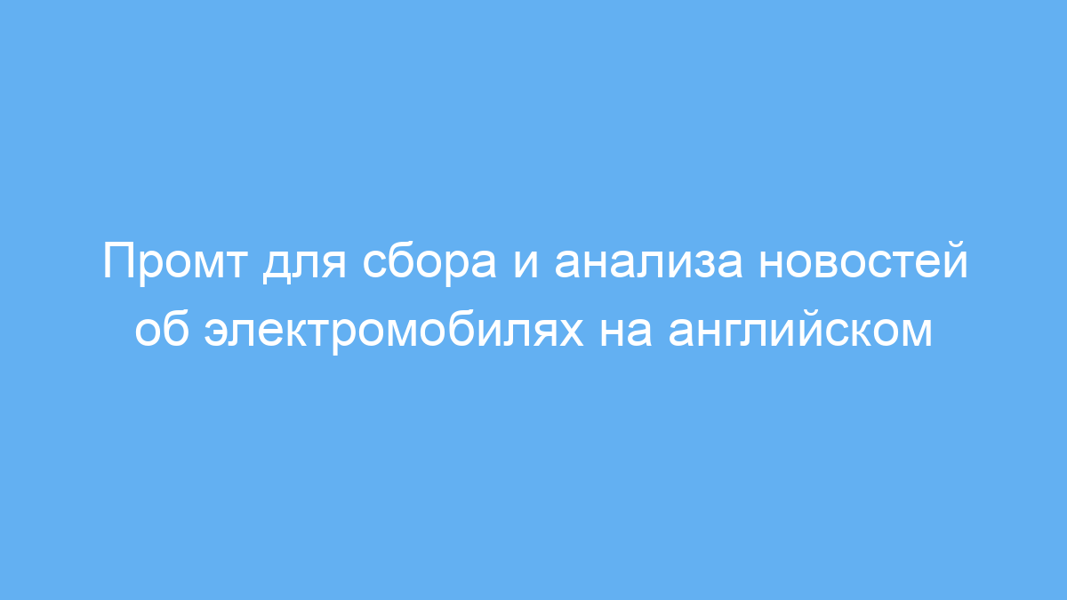 Этот промт будет полезен журналистам, блогерам и исследователям, которые занимаются индустрией электромобилей, особенно в Китае и мире. Он помогает быстро находить и структурировать свежие новости из авторитетных источников на английском языке, экономя время на самостоятельный поиск и анализ информации.