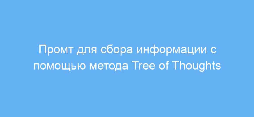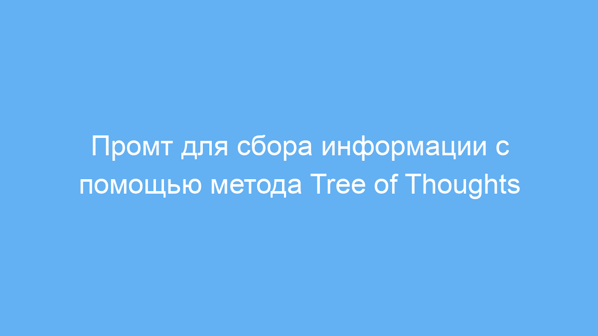 Этот промт предназначен для пользователей нейросетей, которым нужно собрать и структурировать информацию по заданной теме. Он помогает системно подходить к поиску данных, используя метод Tree of Thoughts (Дерево мыслей), который разбивает тему на несколько логических ветвей. Такой подход упрощает анализ сложных вопросов и ускоряет подготовку материалов для учебы, исследований или работы.
