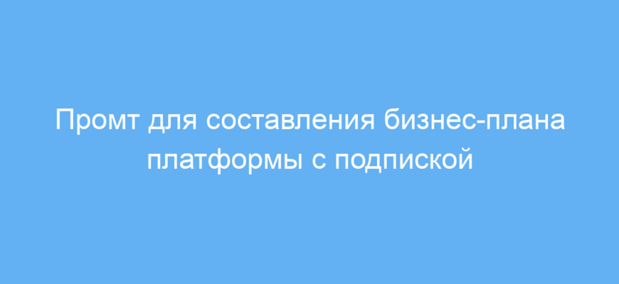 Использование данного промта экономит время и силы при подготовке бизнес-плана для платформ с подписками, объединяющих фрилансеров и заказчиков. Он систематизирует основные пункты и формирует чёткую структуру, что помогает быстро получить рабочий документ для анализа и презентаций.