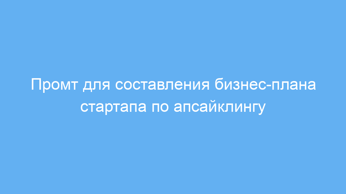 Этот промт предназначен для предпринимателей, стартаперов и консультантов, которые хотят быстро и качественно составить подробный бизнес-план для стартапа в сфере апсайклинга. Апсайклинг — это переработка использованных материалов и продуктов в новые, более ценные и привлекательные изделия. Такой промт помогает сформировать ясное видение бизнеса, учитывая разные направления, например, переработку мебели, электроники или промышленных отходов.