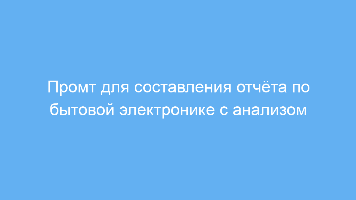 Данный промт позволяет быстро получить структурированный и понятный отчёт по рынку бытовой электроники. Это экономит время при подготовке аналитических материалов, помогает видеть общую картину с ключевыми данными и прогнозами, а также упрощает работу с информацией для презентаций и исследований.