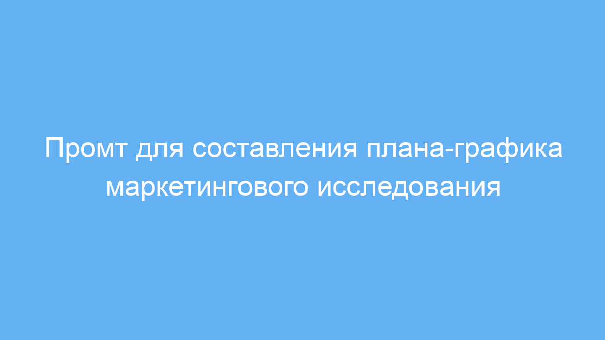 Этот промт предназначен для менеджеров проектов, маркетологов и исследователей, которые хотят быстро и чётко структурировать план-график маркетингового исследования в конкретной отрасли. В первую очередь он помогает систематизировать последовательные этапы работы — от постановки целей до реализации методологии.