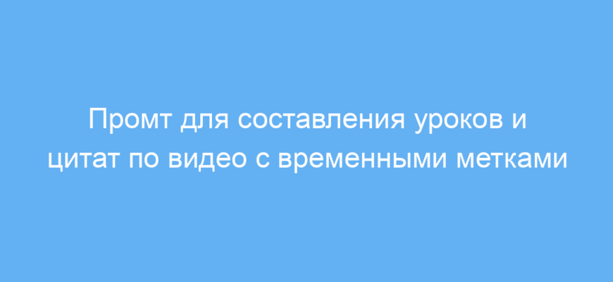 Работает промт так: нейросеть изучает видео целиком, выделяет минимум 10 полезных уроков с указанием времени, находит самые интересные цитаты, а затем составляет краткое резюме каждого часа просмотра. Пользователю остаётся только вставить ссылку на видео, и он получает структурированный и информативный результат.