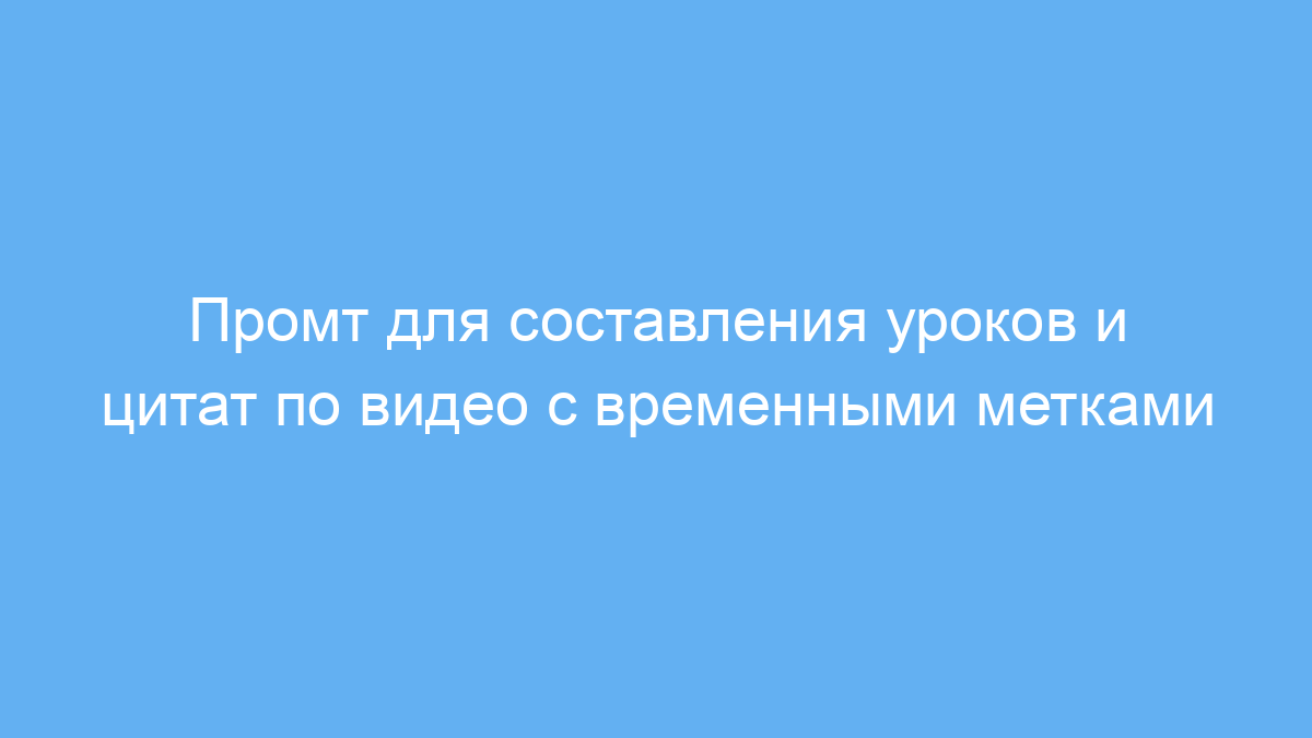Этот промт создан для тех, кто хочет быстро и удобно извлечь из длинных видео основные уроки, интересные цитаты и краткие резюме по временным интервалам. Он помогает структурировать большое видео содержание, выделить ключевые мысли и сделать полезные заметки с точной привязкой к времени. Это удобно для преподавателей, студентов, блогеров, аналитиков контента и всех, кто работает с обучающими или информационными видео.