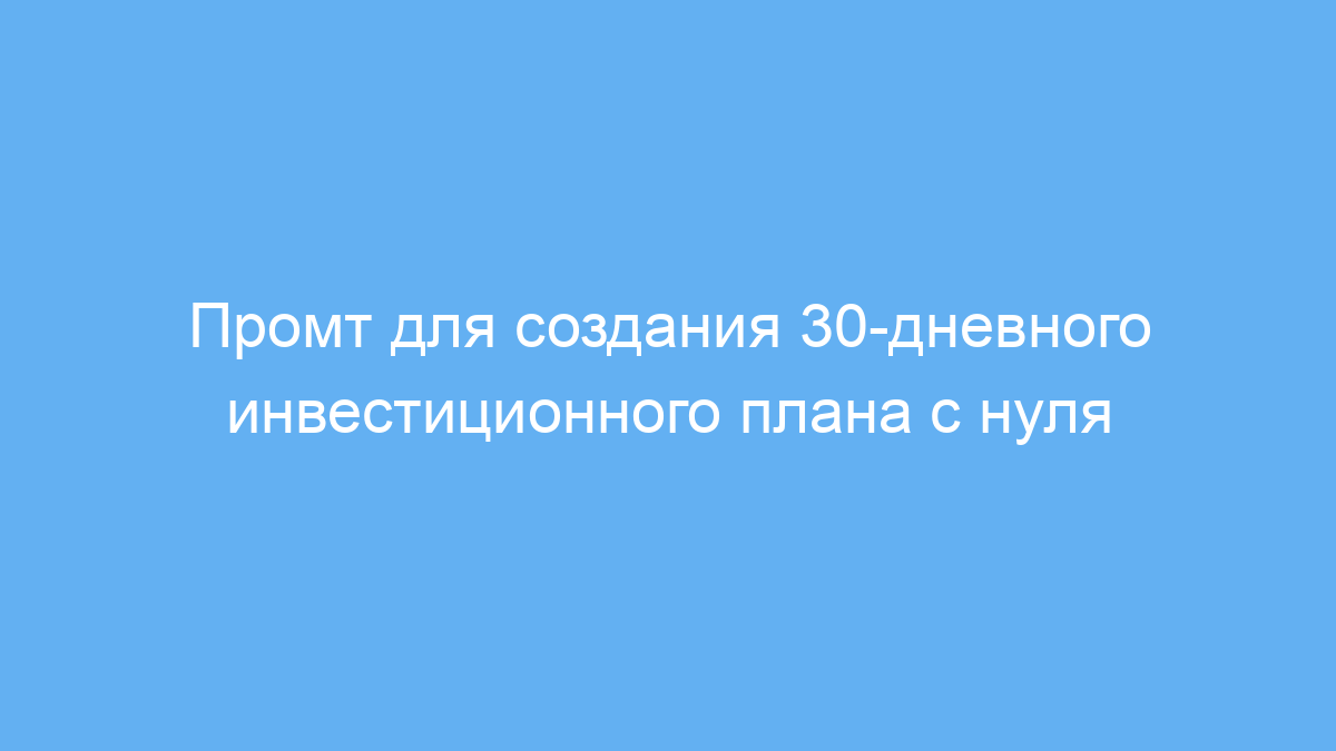 Этот промт предназначен для тех, кто хочет получить четкий и подробный план инвестирования на 30 дней. Особенно он полезен новичкам, которые только начинают разбираться в финансовых рынках и хотят понимать шаги профессиональных инвесторов. Использование промта помогает быстро сформировать структурированное руководство, которое включает конкретные действия, рекомендации по вложениям и моменты для выхода из инвестиций.