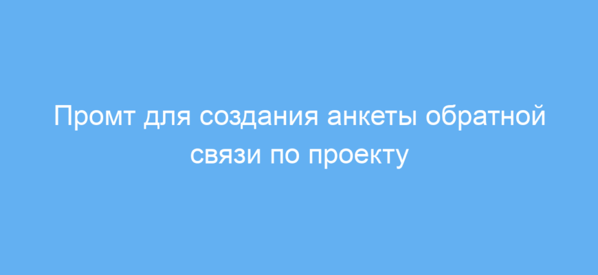 Данный промт существенно экономит время при создании анкет обратной связи, помогая получить структурированные и релевантные вопросы. Это упрощает сбор мнений клиентов и заинтересованных сторон, даёт возможность выявить основные пункты для улучшения и сделать проект лучше.