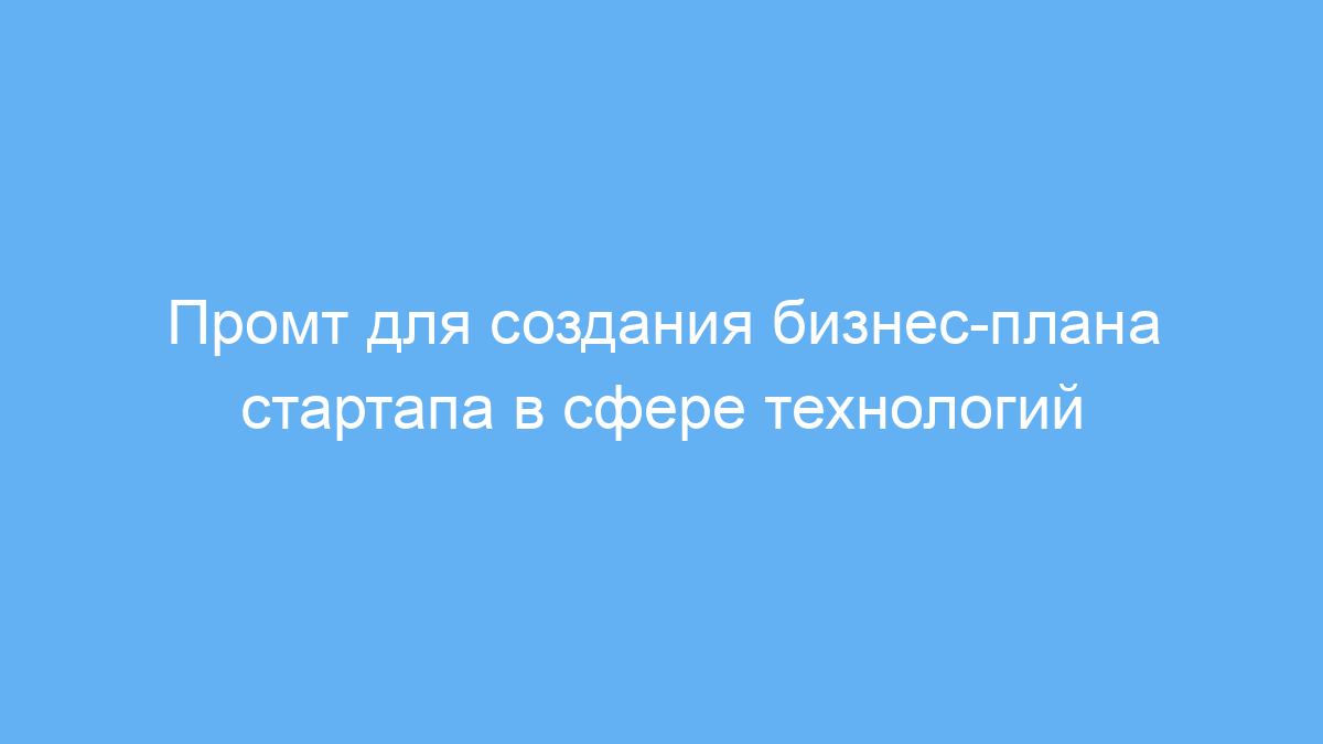 Использование этого промта помогает быстро получить структурированный и детализированный бизнес-план, адаптированный под уникальные особенности технологического стартапа. Это экономит время, снижает сложность подготовки документа и повышает качество планирования.