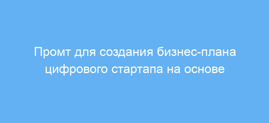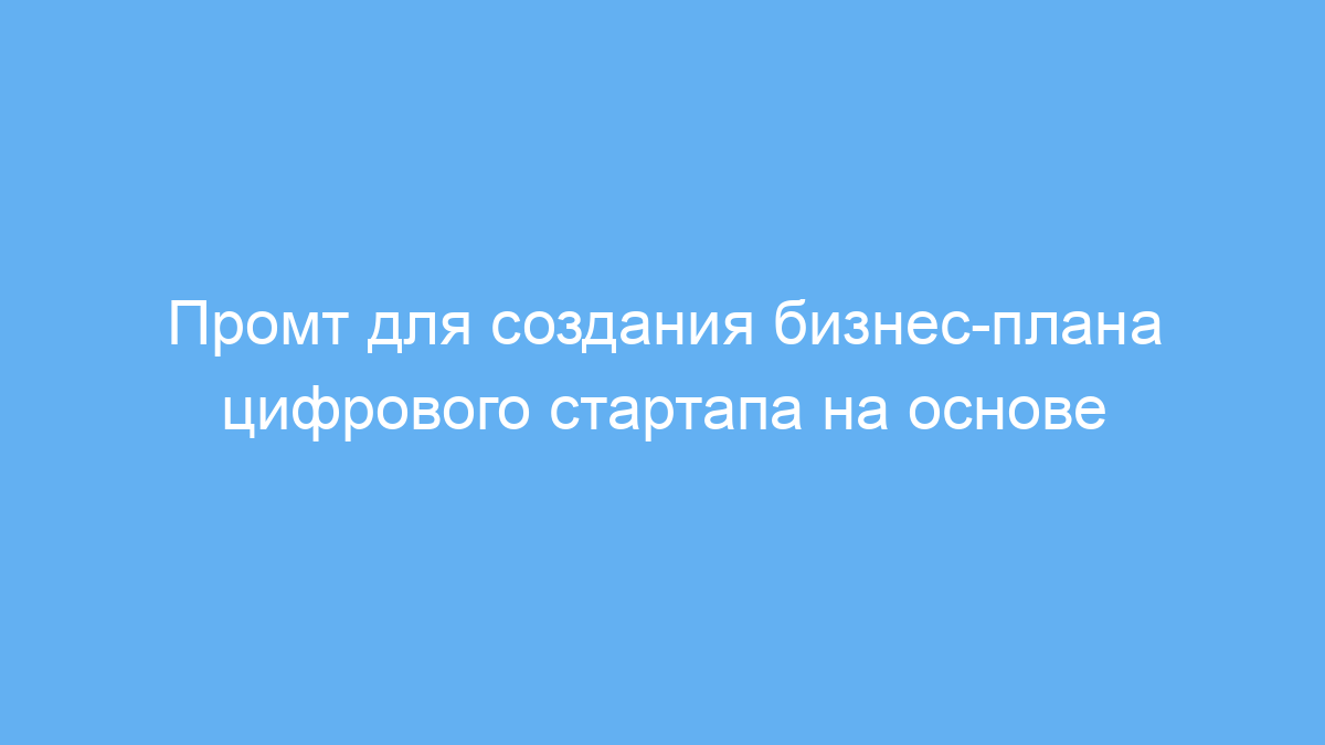 Используйте этот промт для быстрого получения комплексного бизнес-плана по любой идее цифрового стартапа. Рекомендуется четко формулировать пожелания, чтобы генерация была максимально релевантной.