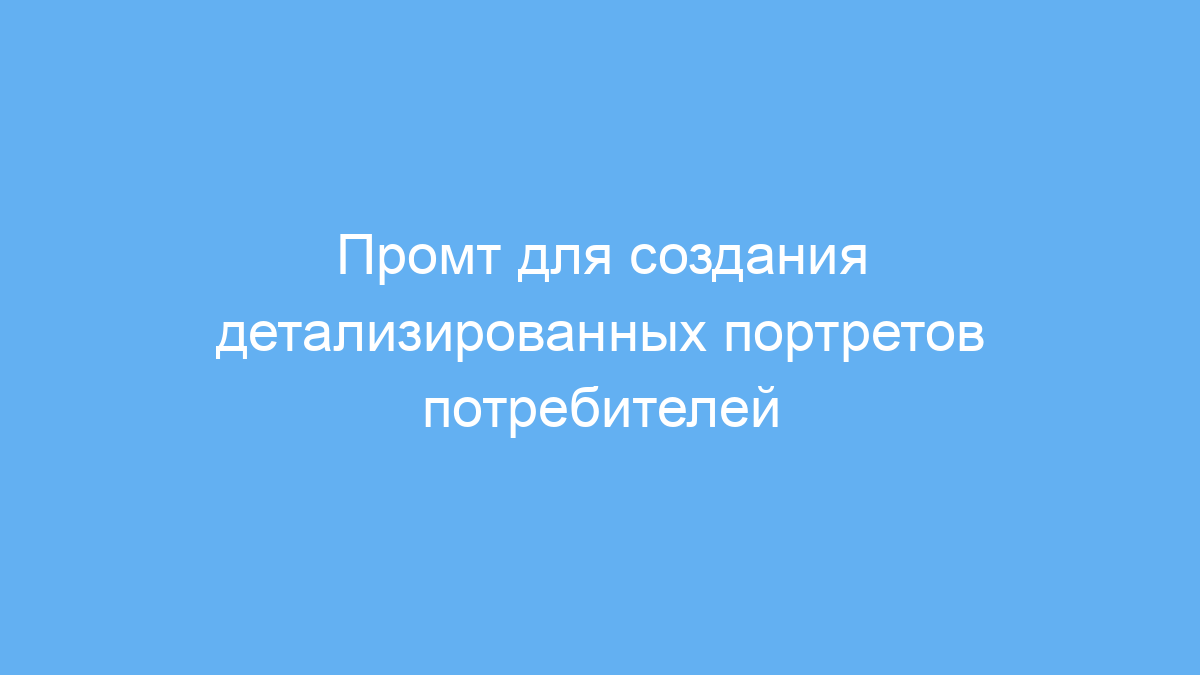 Этот промт предназначен для маркетологов, исследователей рынка и специалистов по продуктам, которым необходимо создать подробные портреты потребителей на основе данных исследований. Он помогает структурировать информацию о потребностях, мотивации, предпочтениях и поведении целевой аудитории.