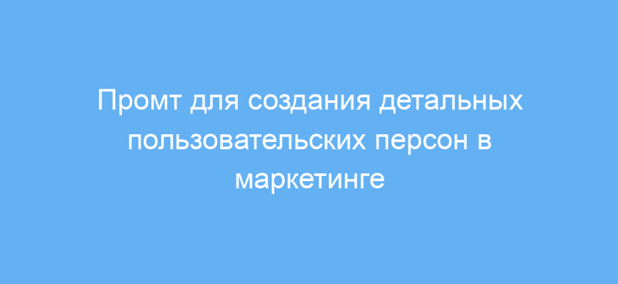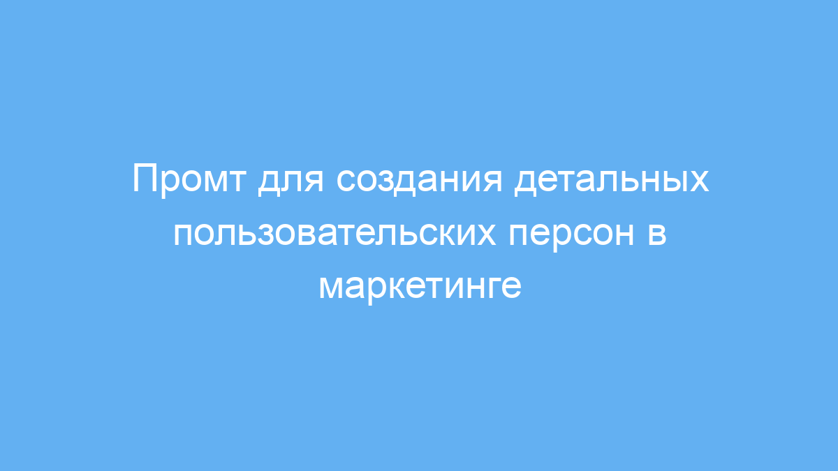 Этот промт предназначен для маркетологов, предпринимателей и исследователей, которые хотят глубоко понять свою целевую аудиторию. Если вы работаете над продвижением бизнеса или планируете запуск нового продукта, знание демографических данных и интересов клиентов — ключ к успеху. Промт помогает быстро сформировать подробные пользовательские персоны, опираясь на данные о возрасте, поле, поведении и предпочтениях потенциальных клиентов.