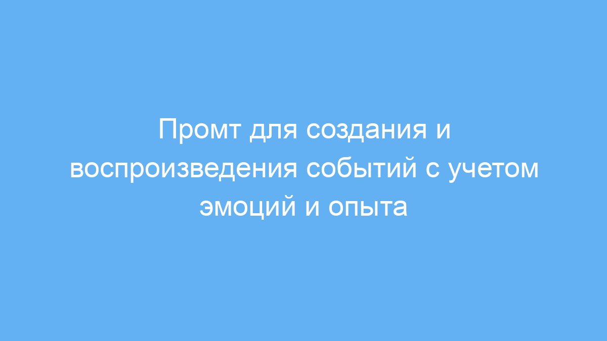 Проблема, которую решает промт, — это системное определение и генерация деталей событий с учётом множества переменных. В результате пользователь получает полноценный набор материалов: от описаний до мультимедийного воспроизведения. Промт позволяет оптимизировать процесс, минимизируя пропуски важных элементов и обеспечивая обратную связь для улучшения итогов.