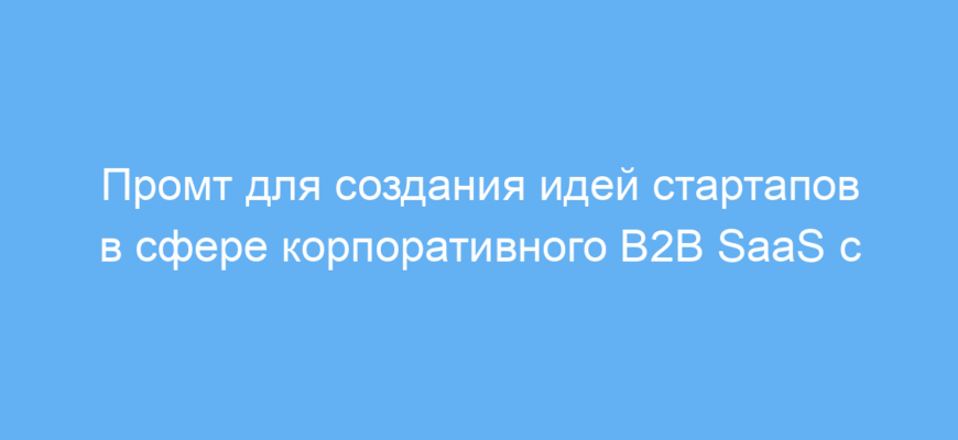 Данный промт упрощает процесс генерации качественных и привлекательных идей для стартапов в корпоративном B2B SaaS с искусственным интеллектом. Он экономит время и помогает сформулировать ясные концепции, понятные и интересные как предпринимателям, так и инвесторам.