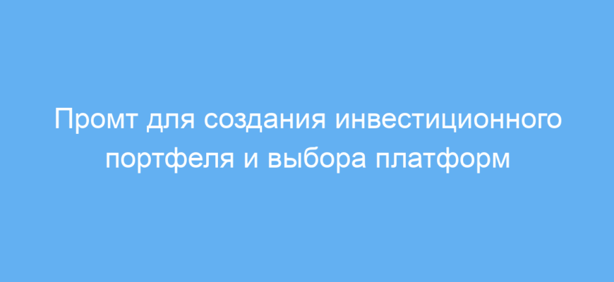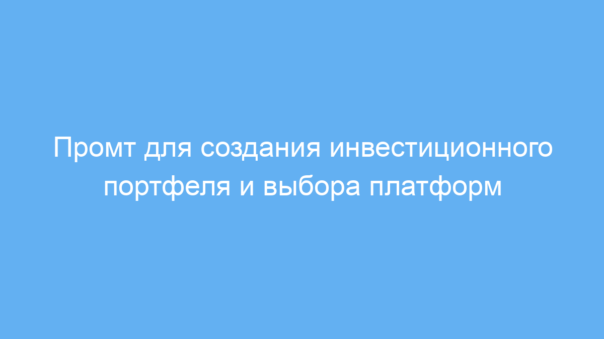 Этот промт предназначен для тех, кто хочет грамотно инвестировать деньги в интернете, но не знает с чего начать. Он помогает исследовать инвестиционный бюджет, определить риск-профиль и подобрать оптимальный портфель с учётом сроков и предпочитаемых активов.