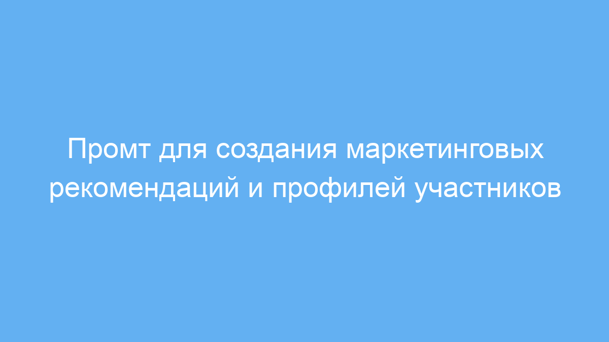 Этот промт предназначен для маркетологов, HR-специалистов и менеджеров образовательных проектов, которые хотят превратить большой объем информации о программе Strategic AI в полезные и конкретные бизнес-активы. С его помощью можно быстро получить рекомендации по маркетинговой стратегии, описание идеальных образов руководителей-участников и сформулировать ценностное предложение сертификатов по искусственному интеллекту.