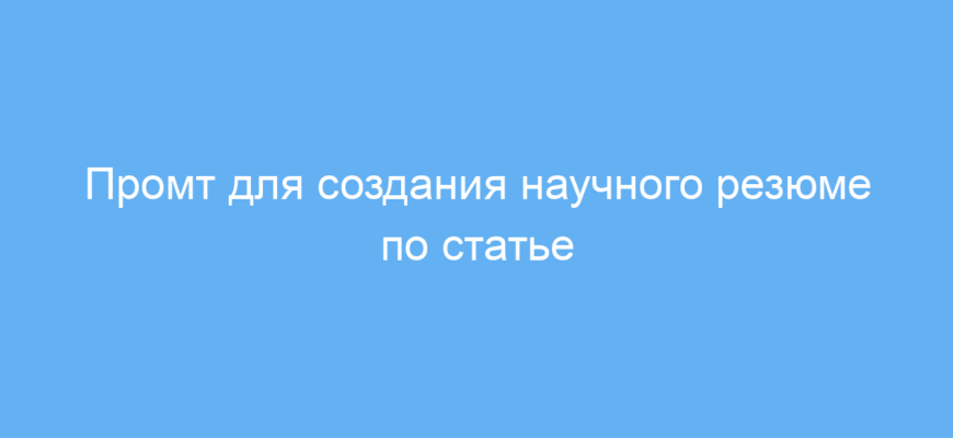 Этот промт предназначен для специалистов, студентов и исследователей, которым требуется быстро получить чёткое и объективное резюме научной статьи. Он помогает сэкономить время на самостоятельное чтение и анализ больших объёмов информации, предоставляя качественное краткое содержание работы.